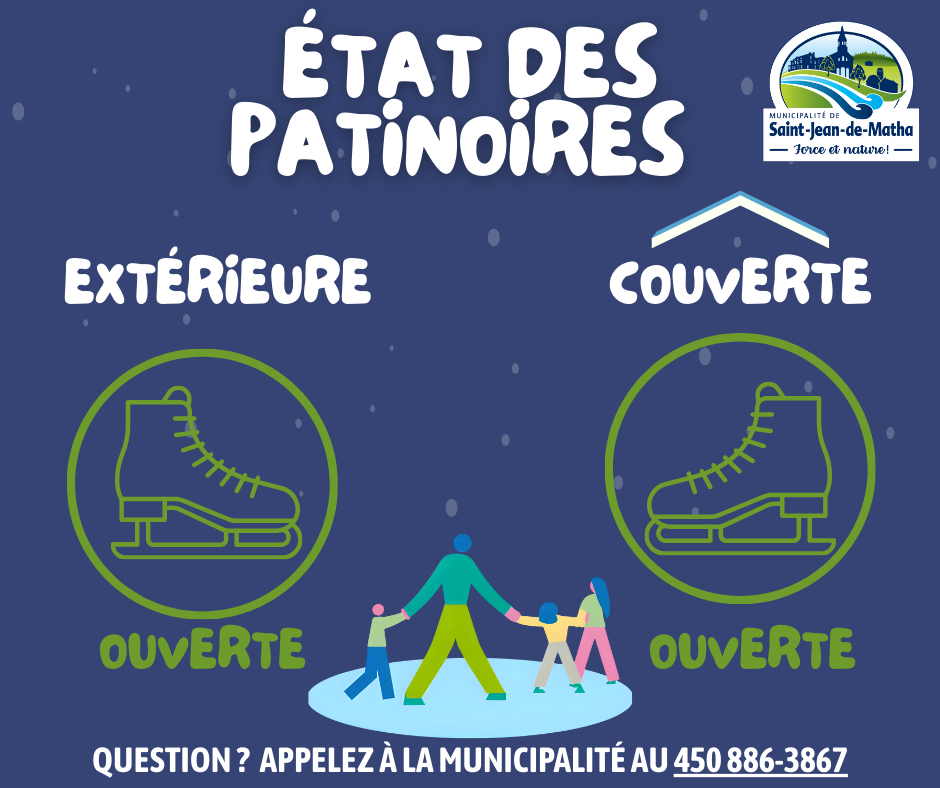 Horaire de la patinoire - Temps des Fêtes et relâche